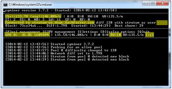 cgminer –scrypt -o stratum+tcp://stratum-us.doge.hashfaster.com:3339 -u username.workername -p worker_password –I 13