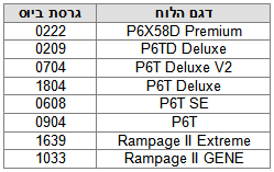 להלן טבלה המפרטת את לוחות האם של ASUS וגרסת הביוס אשר ממנה ואילך תכלל התמיכה בארכיטקטורת המעבדים החדשה: