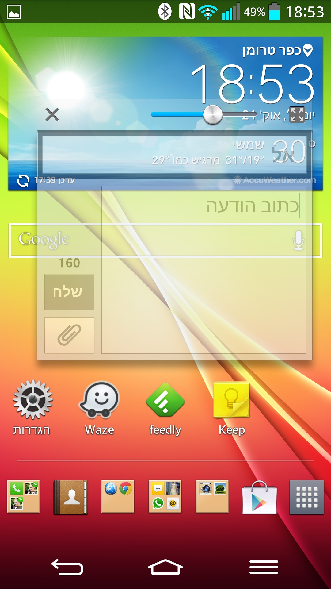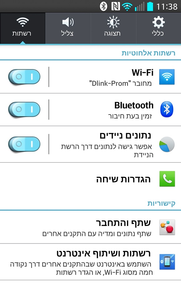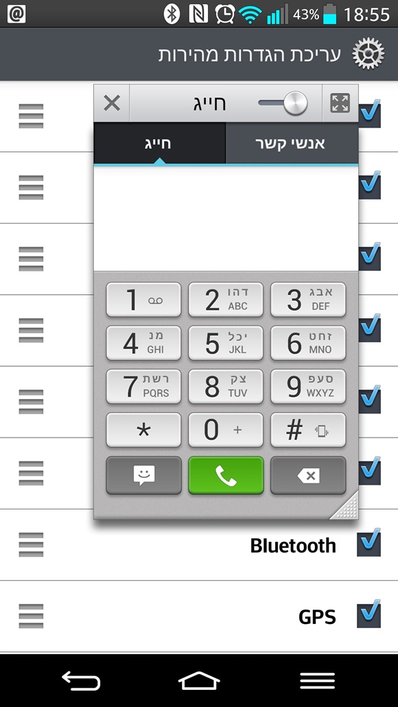 אז התשובה היא חד משמעית לא. לפי דעתי LG קנתה מכשיר סמסונג, נתנה אותו למחלקת הפיתוח שלה ואמרה לה: "תעשו כזה". וזה אכן מה שהם עשו. מלבד פלטת צבעים שנוטה ללבן מאשר השחור שתמצאו בטאצ'וויז של סמסונג, ב-Optimus UI של LG, המבוססת על אנדרואיד 4.2.2, כמעט הכל מרגיש ונראה אותו דבר. מתפריט ההגדרות המחולק לארבעה טאבים, שורת ההגדרות המהירות ואפילו עד לחייגן. ההשראה מסמסונג היא מורגשת בהחלט וזה לא דבר רע לטעמי, אך לא משהו מעניין או מיוחד.
